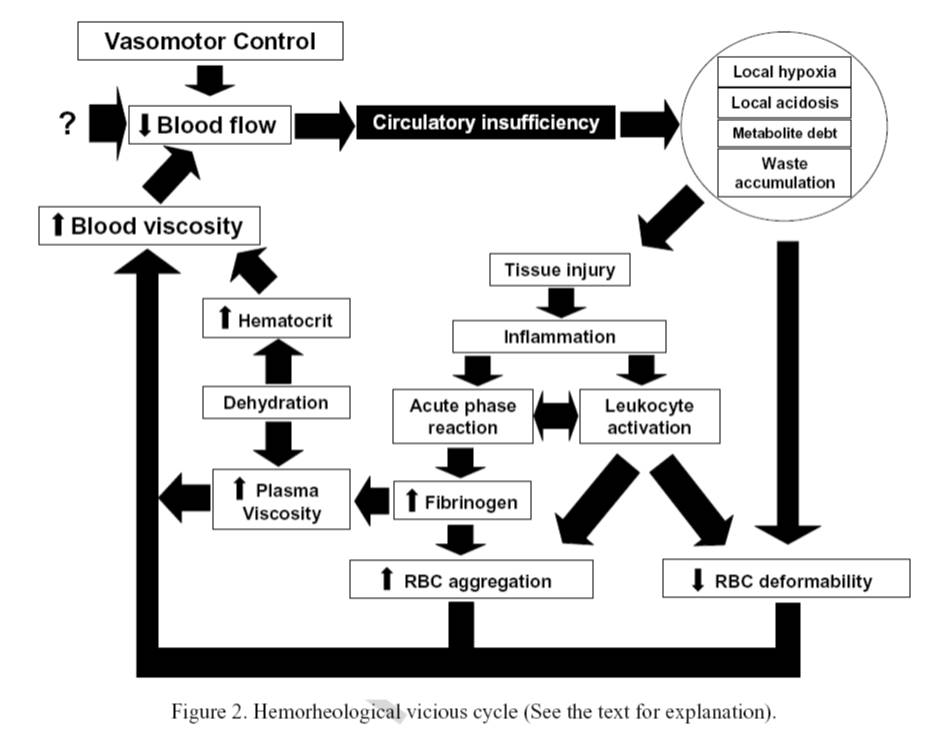 Kan dokusunun damar sistemi içindeki hareketi her şeyden önce kendi özelliklerine ve akışkanlığına bağlıdır. Kanın akışkanlığı, tüm çok fazlı sıvılarda olduğu gibi her bir fazın reolojik özellikleri ve iki fazın birbirine oranı ile belirlenir. Bu iki fazı, kanın hücresel elemanları ve plazma oluşturur. Buna göre, kanın akışkanlığı; plazma viskozitesi, hematokrit değeri ve kan hücrelerinin reolojik davranışlarından etkilenir. Viskozite, bir akışkanın (kan) belirli bir sıcaklıktaki akışa (kan akımı) karşı direncinin (kayma gerilimi) ölçüsüdür. Eritrositlerin şekil değiştirme yetenekleri (deformabilite) ve tersinir kümelenme eğilimleri (agregasyon), değişik koşullarda kanın akışkanlığının belirlenmesinde önemli rollere sahiptirler. Akım hızının yüksek olduğu koşullarda eritrosit deformabilitesi kan viskozitesini belirleyen temel faktörler arasındadır. Akımın yavaşlaması halinde ise, hücrelere etki eden kuvvetler küçülür ve kümelenme eğilimi ön plana çıkar (agregasyon). Eritrosit agregatlarının oluşması, bu koşullarda viskoziteyi yükseltir.